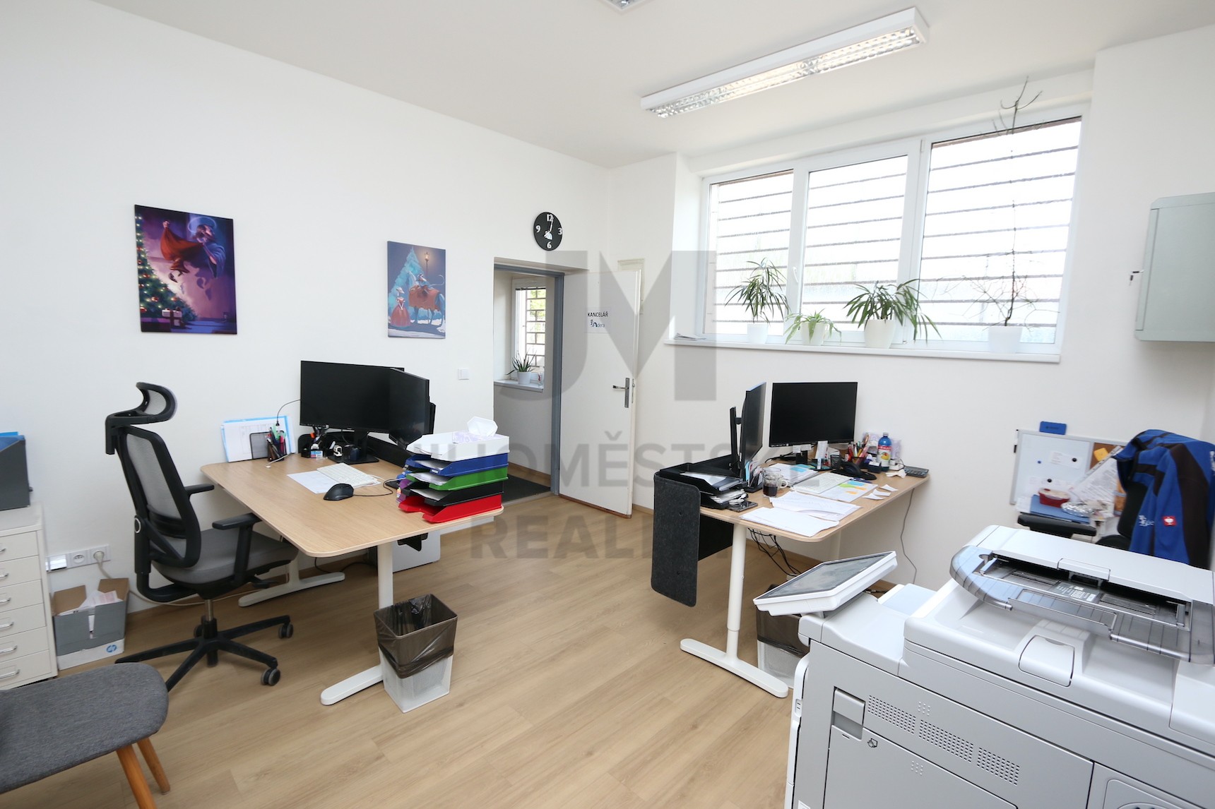 Nájem kanceláře o dispozici 4+1 se skladem, užitná plocha kanceláře 79 m2 a vytápěného skladu 78 m2, osobním vlastnictví, nachází se v 1. nadzemním podlaží.