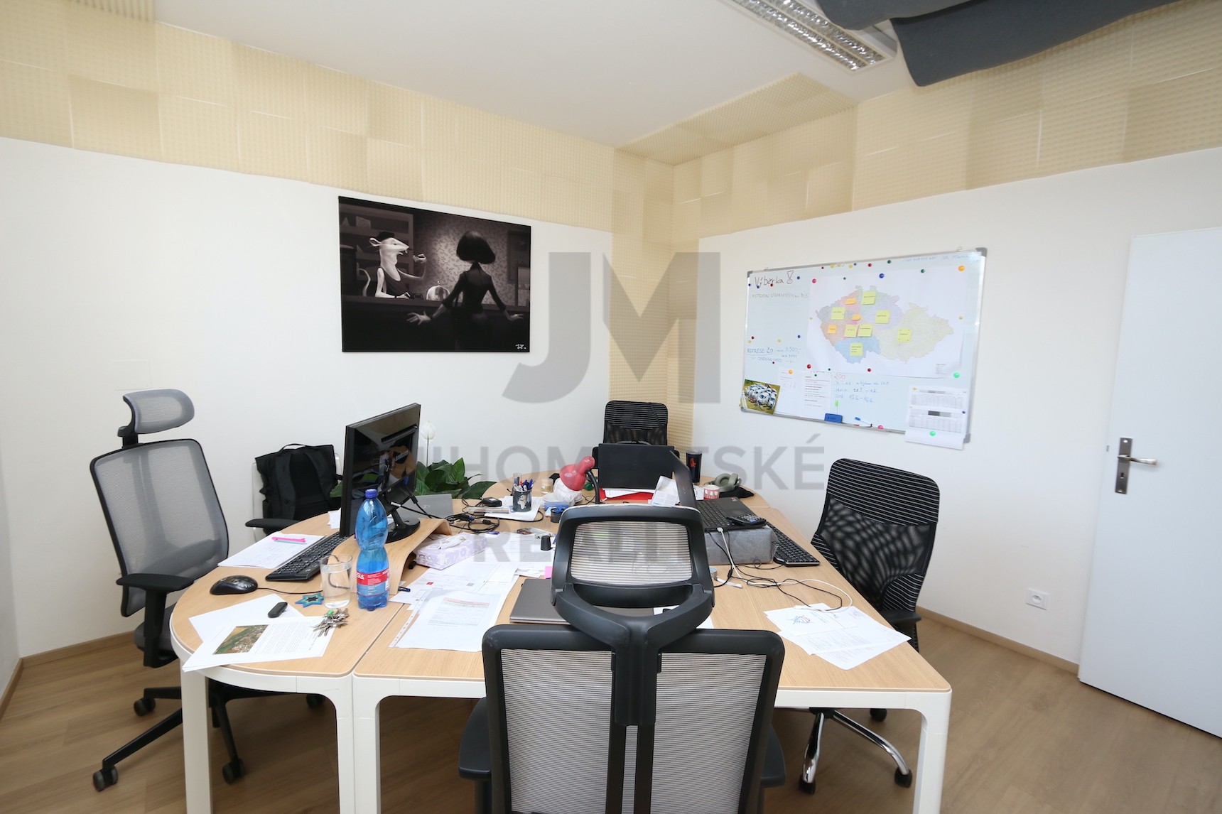 Kancelář je po celkové rekonstrukci. Nová kuchyňská linka, rekonstruovaná koupelna a WC. Na podlaze je vinyl a dlažba.